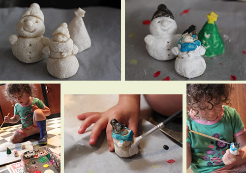 Because we have to have a whole family of objects (whether it’s teaspoons, straws or Lego dinosaurs), Elsie’s snowman was herself, mine was me, and as ‘Maeve’s too little’, Elsie kindly made a ‘Maeve snowman’: