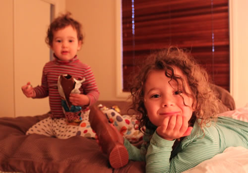 Always a joy to hang out here for a while! I just love the middlish picture where the girls are eating their chocolate 🙂 so very sweet!