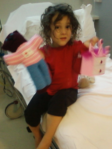 Like a handmade teddy from volunteers of the Australian Red Cross and a little pink chest of drawers in the shape of a crown from the Geelong Hospital’s Easter Bunny after our ambulance ride and very short stay during Easter (another bout of croup).