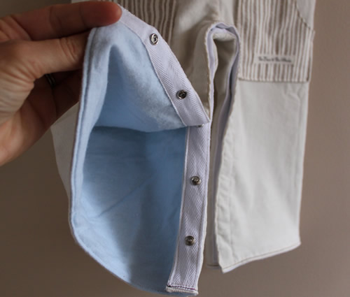I’m so excited about these overalls. For one, they’re super cute and super comfy. And two (three, four and five), I got to try my hand at modifying a pattern so that the leg shape was less flarey and more funky, I mastered buttonholes, I got to try out snap crotches and I made them super warm with a flannelette lining in the bottom half and a really cool lining of quilting quality cotton in the top half that matches the signature ‘The Bear & The Whale’ pockets.
