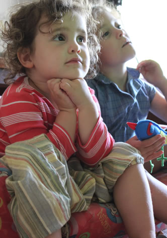 ‘We’re playing babies,’ she tells me when I remind her that dummies are (strictly) for bed. She quickly crawls across the lounge room floor towards Elsie and says, ‘Wah, wah.’