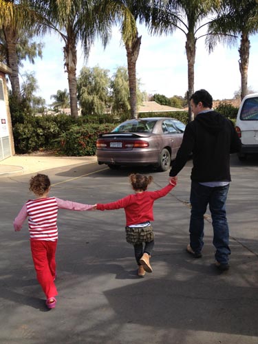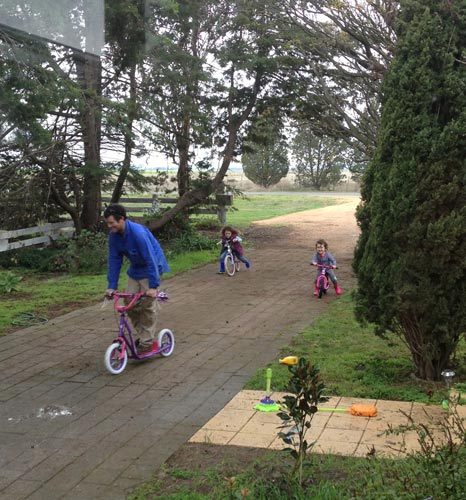 I just couldn’t get past the photo of the girls and their dad on their bikes/scooter. He really does need to upgrade. What a cool DAD!!! How did the leg warmers go?? Now there’s inspiration for your next blog.
