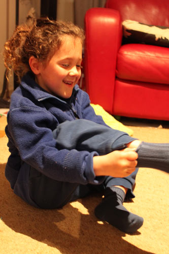 Socks and smiles in the same sentence! Well done Larissa and Elsie. Still a few weeks left of winter to enjoy them, must feel no much nicer to have something under gumboots Elsie! X