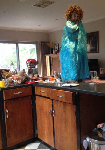 The next day I came in from outside with the puppy trailing behind me. Quicker than Elsa could create an ice staircase, Maeve was up on the bench.