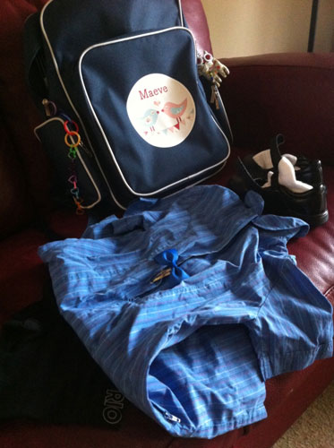 Last night she set out her things. A new bag, new knickers, new socks, new shoes, a new hair clip and a hand-me-down dress (that has seen a few years of school already, and quite a few kinder sessions last year too once Maeve realised Elsie had upsized and it could be hers).